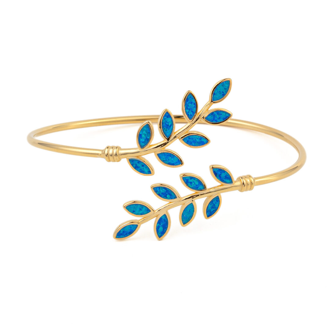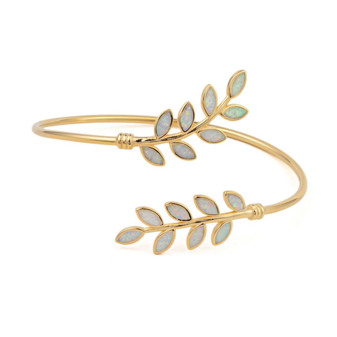 Βραχιόλι με Opal και Φύλλα Ελιάς – Επιχρυσωμένο Ασήμι 925