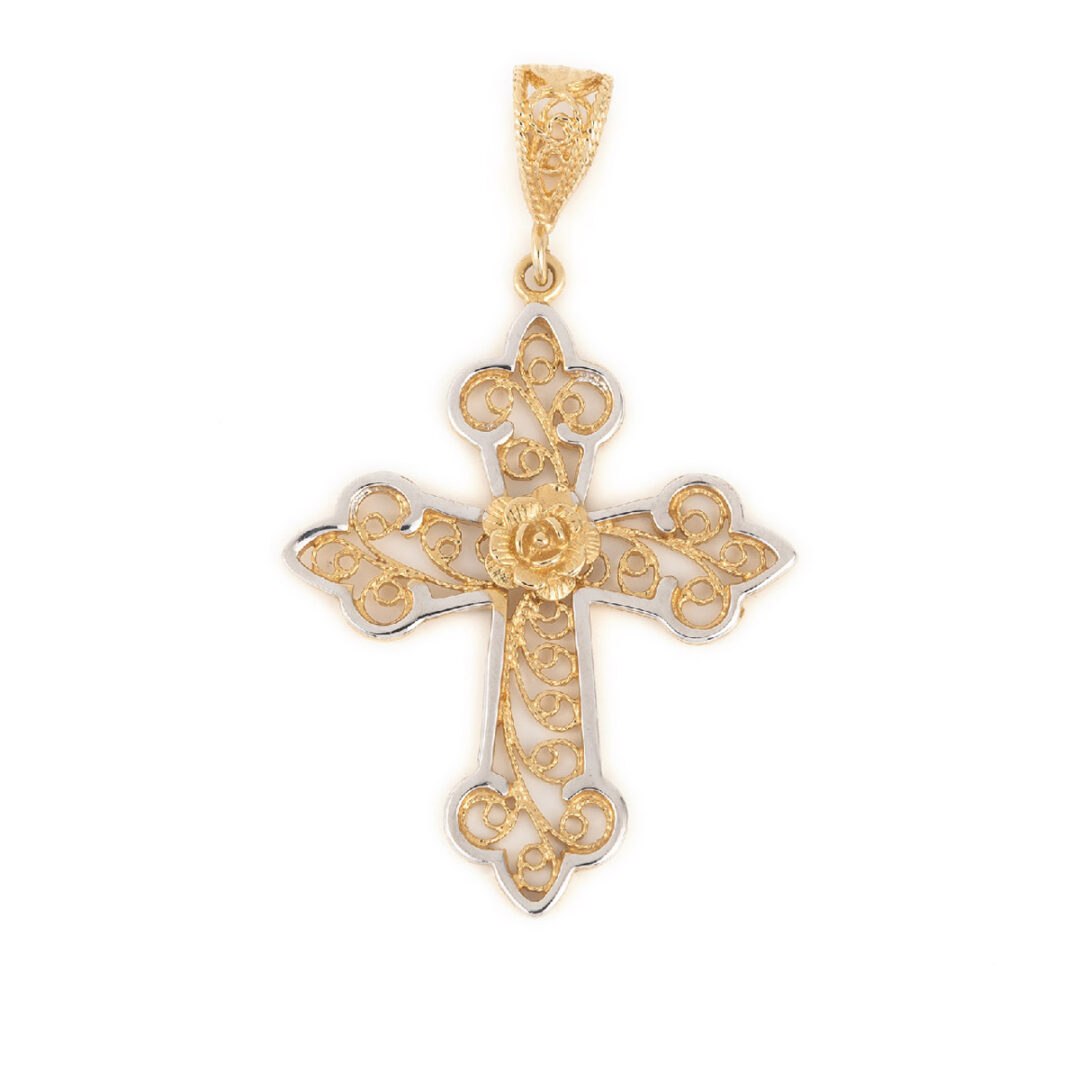 Βυζαντινός Σταυρός από χρυσό 14Κ με τριαντάφυλλο.