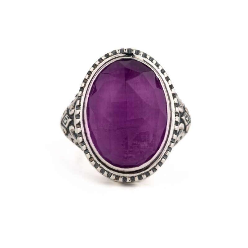 Byzantine Ring with Stones – 925 Sterling Silver and Gold Plated