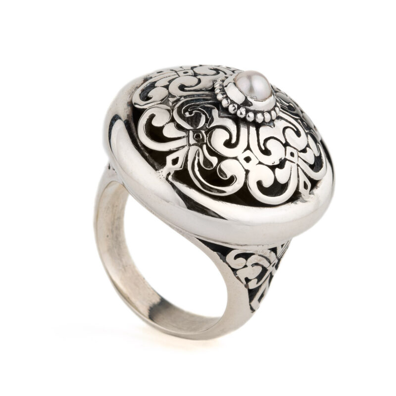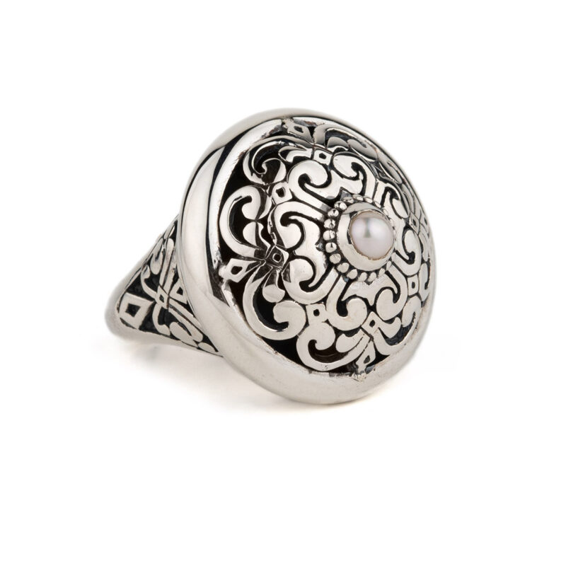Βυζαντινό Δαχτυλίδι Στρογγυλό με Πέρλα – Ασήμι 925 Yianni Κοσμήματα