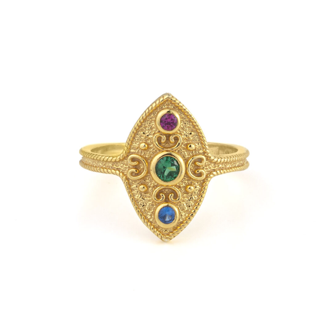 Byzantine Ring with Stones – Gold Plated 925 Sterling Silver