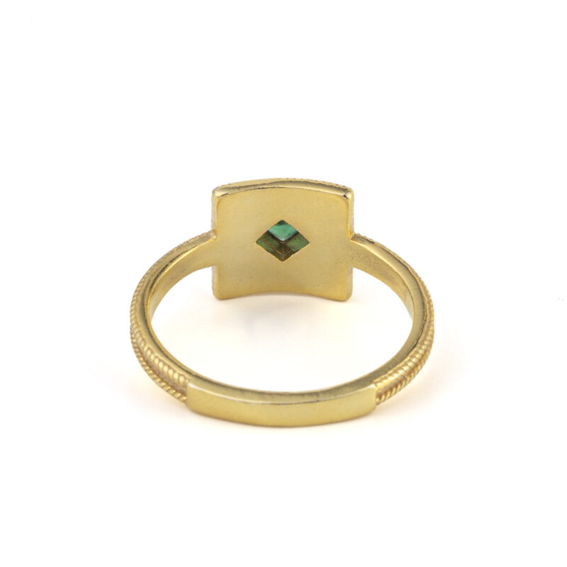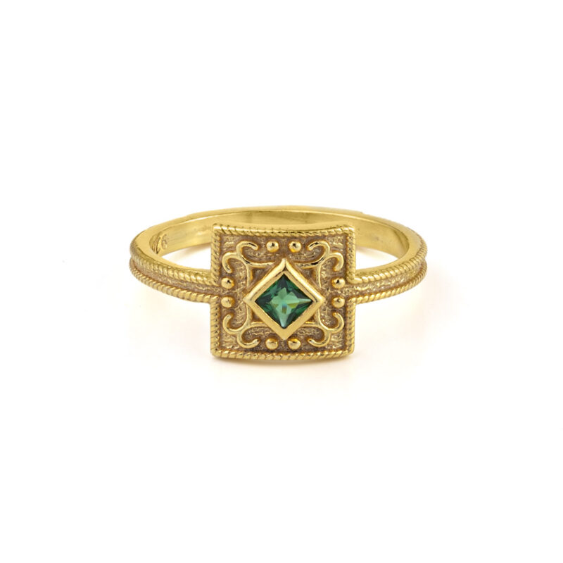 Byzantine Square Ring with Stone – 925 Sterling Silver and Gold Plated