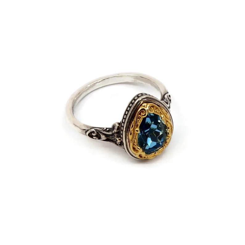 Byzantine Ring with London Blue Stone – 925 Sterling Silver Gold Plated