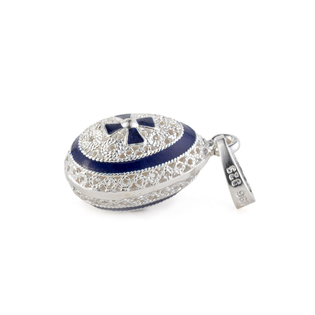 The pendant is embellished with a fine filigree and enamel in Faberge style.