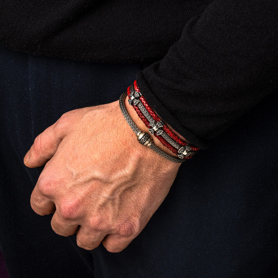 Δερμάτινο Βραχιόλι με Σταυρούς – Ασήμι 925