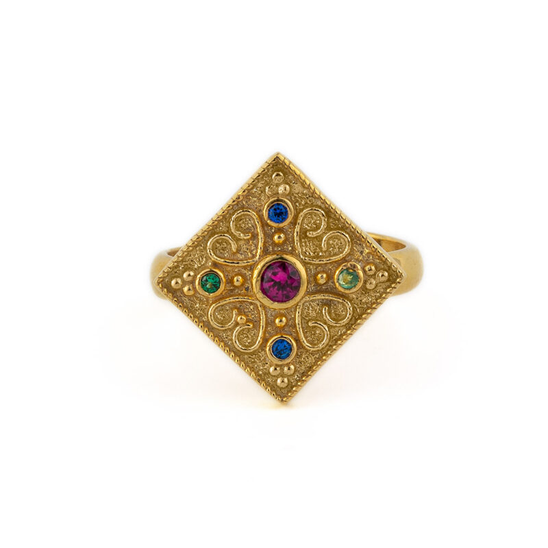 Byzantine Circles Ring with Stones – 925 Sterling Silver and Gold Plated