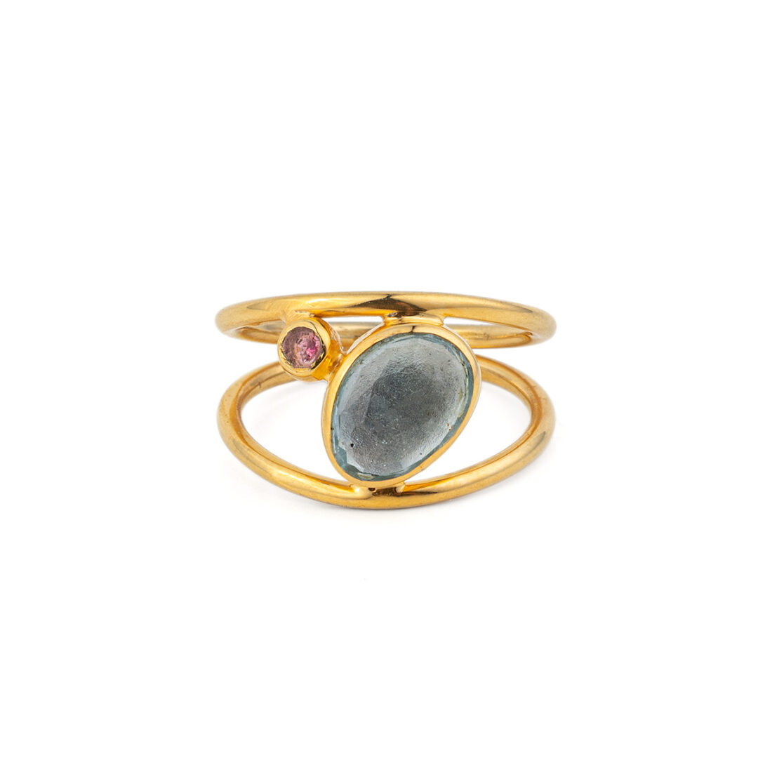 Δαχτυλίδι Κυκλικό με Μπλε Τοπάζι – Επιχρυσωμένο Ασήμι 925