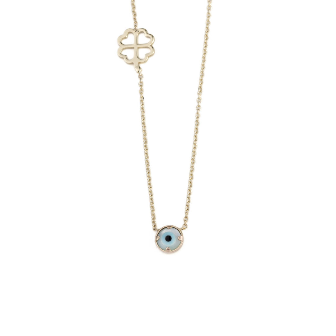 Κολιέ Μάτι και Τετράφυλλο Τριφύλλι – 9Κ Χρυσό