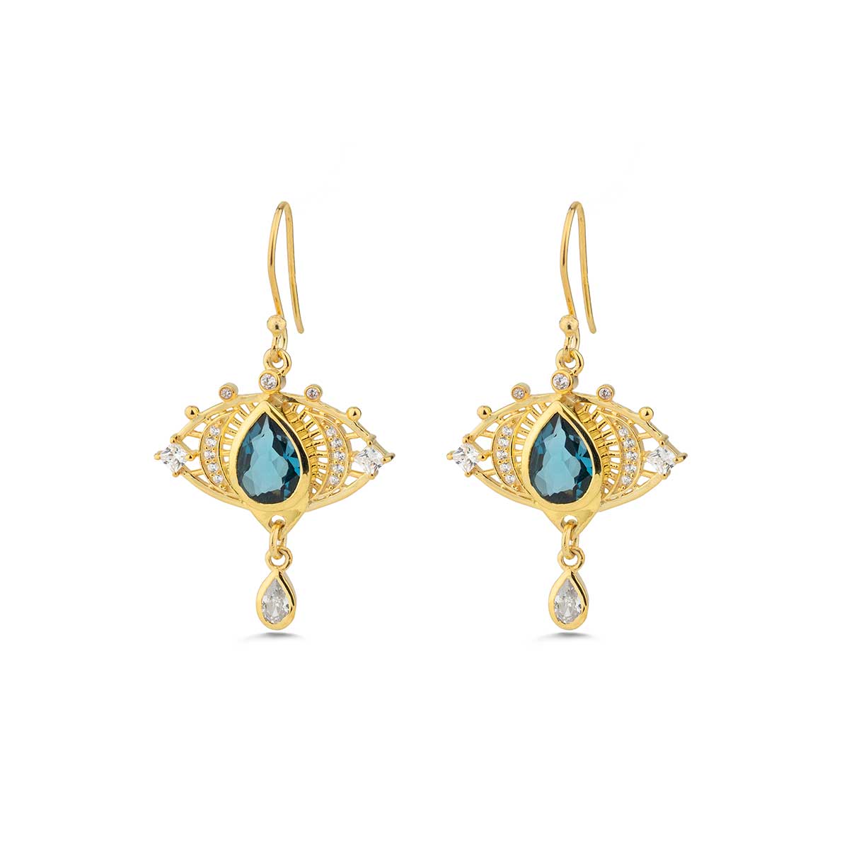 Evil Eye London Blue Topaz Dangle Earrings in 925 Sterling Silver & Gold Plating