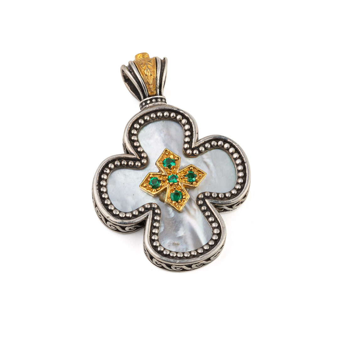 Gerochristo – Σταυρός από Ασήμι 925 με Επιχρυσωμένα μέρη με Mother of Pearl και Ζιργκόν