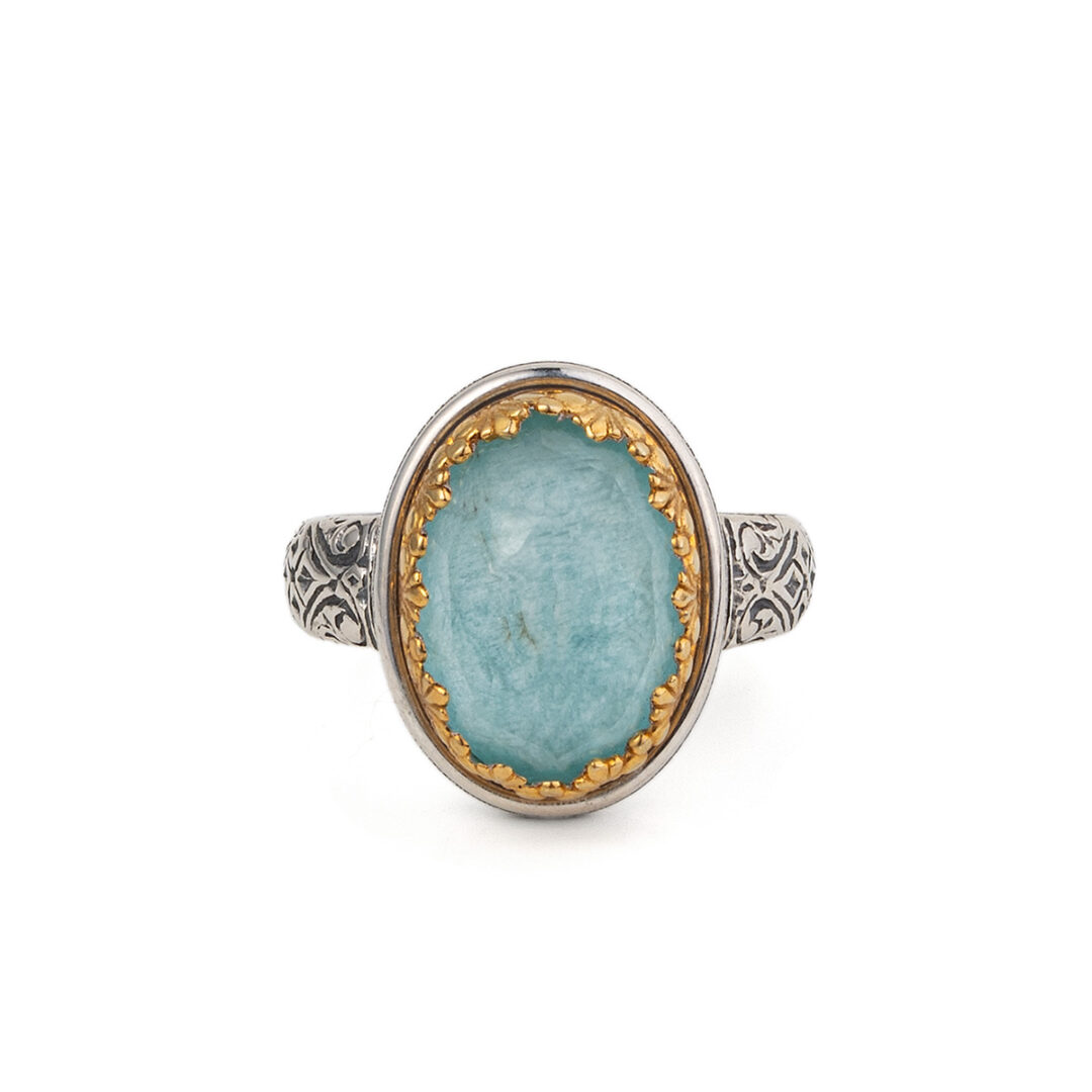 Gerochristo – Δαχτυλίδι Iris από Ασήμι 925 και Επιχρυσωμένα Μέρη με Αμαζονίτη