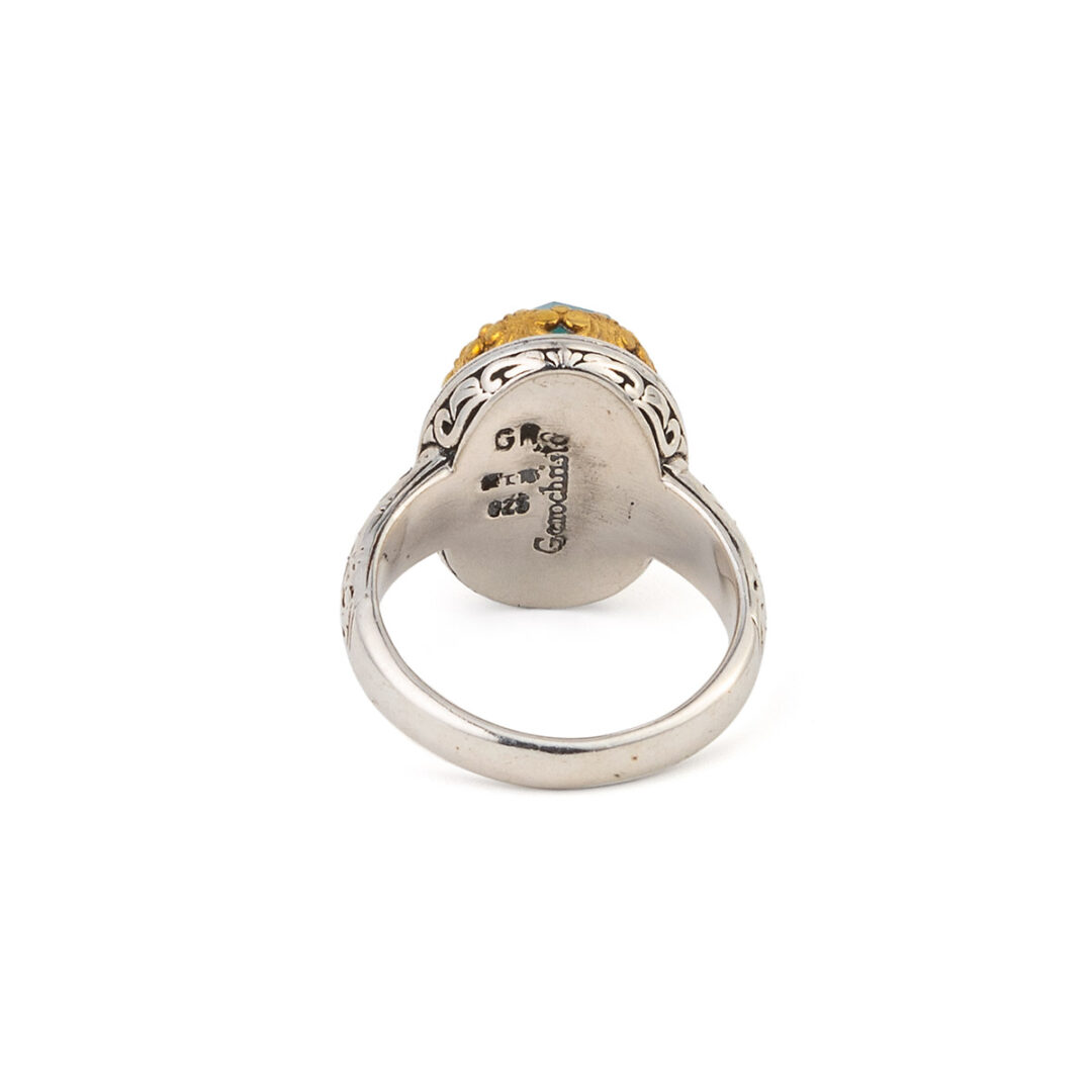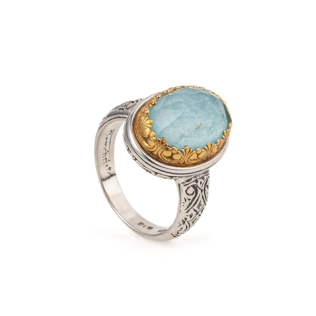 Δαχτυλίδι από ασήμι 925 με επιχρυσωμένα μέρη και πέτρα doublet.