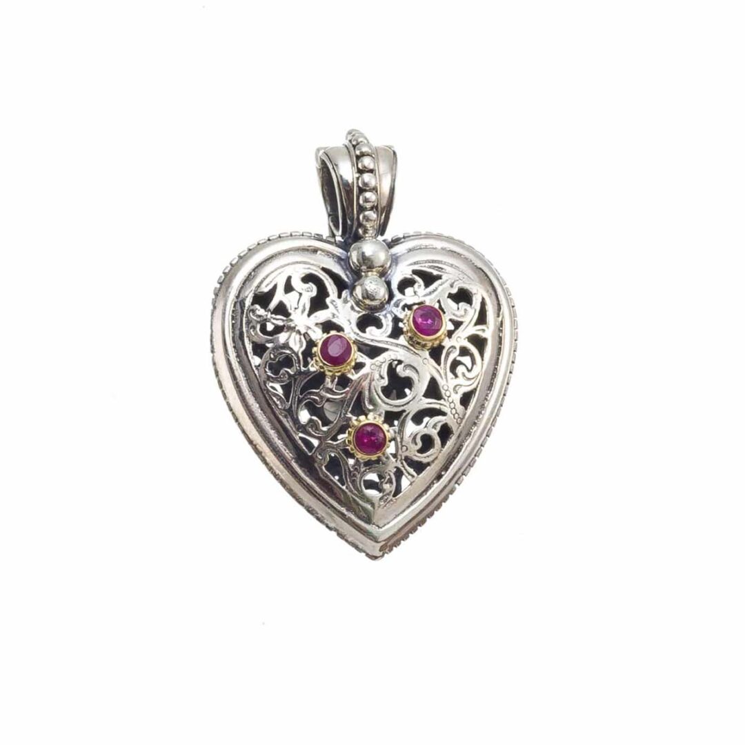 Gerochristo – Μενταγιόν Garden Shadows Καρδιά από Χρυσό 18Κ και Ασήμι 925 με Ρουμπίνια