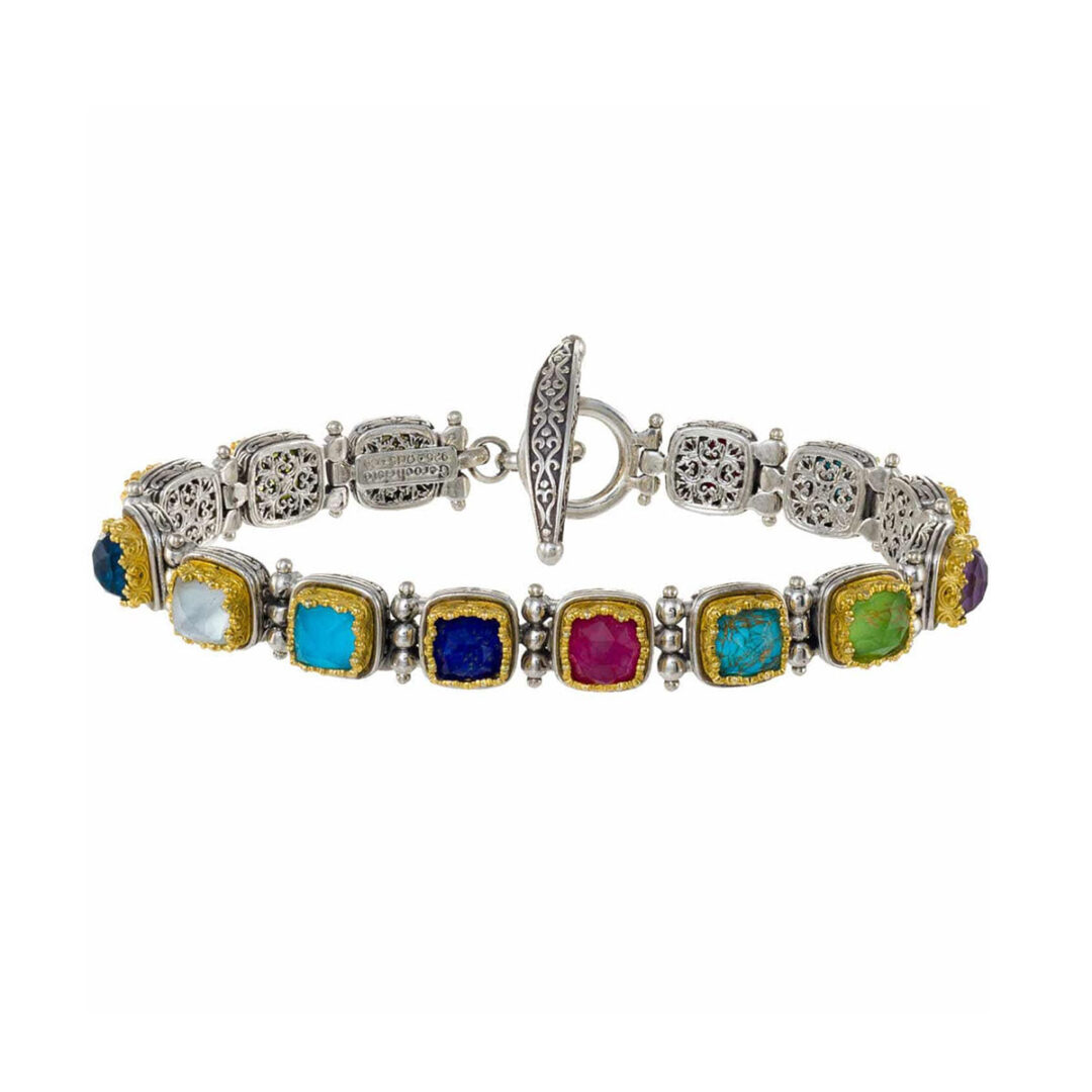 Βραχιόλι από ασήμι 925 με επιχρυσωμένα μέρη και πέτρες doublet 6x6mm.