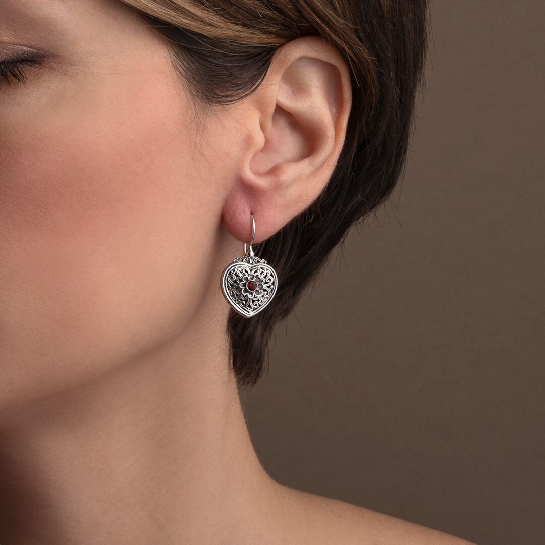 Αυτά τα σκουλαρίκια, με το μοτίβο της καρδιάς, συμβολίζουν την αγάπη και είναι ιδανικά για όσους εκτιμούν τα ωραία πράγματα στη ζωή.