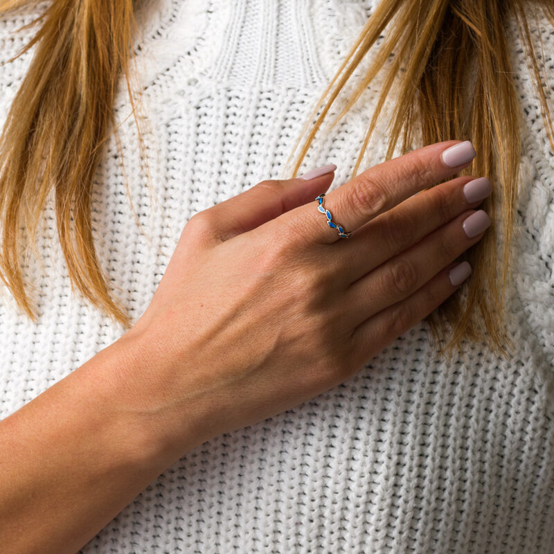 Δαχτυλίδι με Φύλλα Ελιάς Μπλε Οπάλ – Ασήμι 925