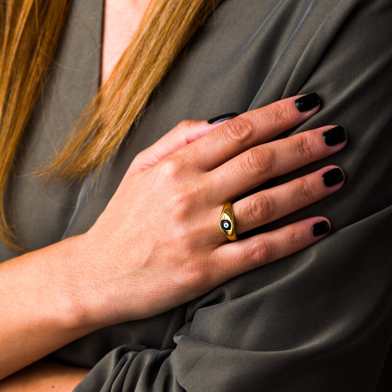 Δαχτυλίδι Μάτι Φίλντισι Onyx – Ασήμι 925 Επιχρυσωμένο