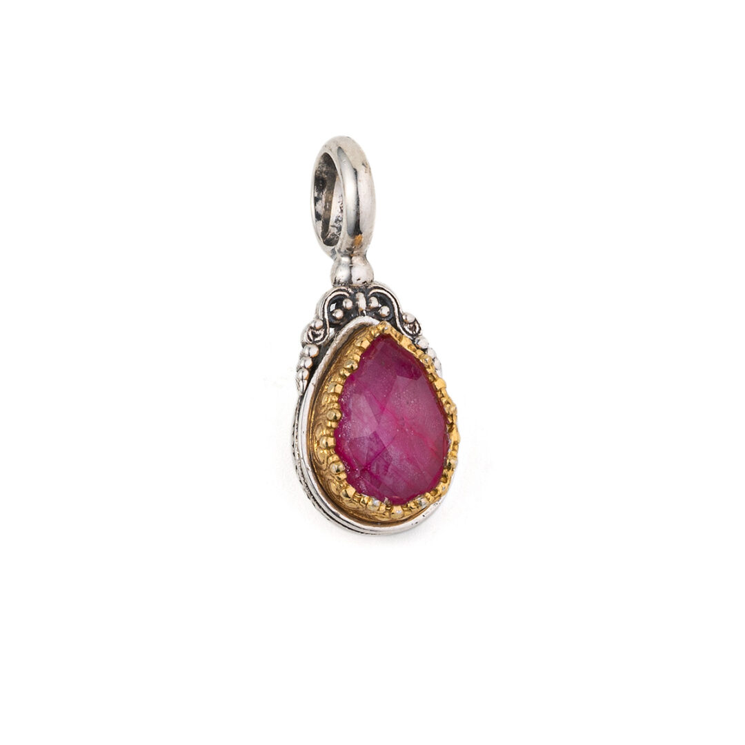 Gerochristo – Μενταγιόν Iris Σταγόνα από Ασήμι 925 με Ρουμπίνι