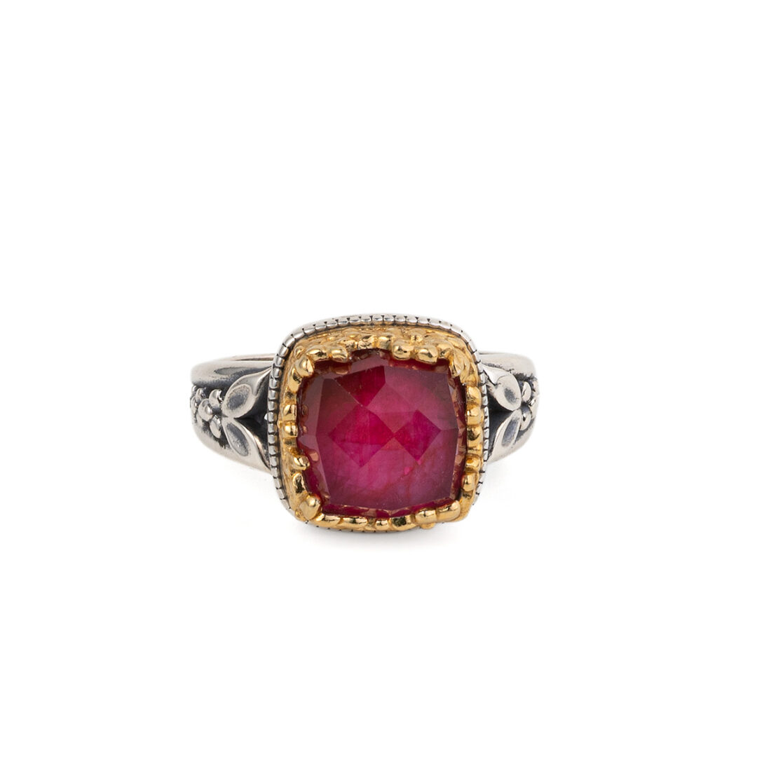 Gerochristo – Τετράγωνο Δαχτυλίδι Dione από Ασήμι 925 με Ρουμπίνι