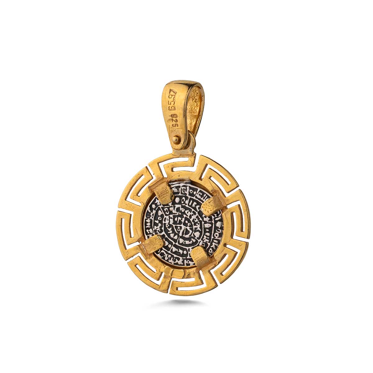 Phaistos Greek Key Pendant 925 Sterling Silver Gold Plated