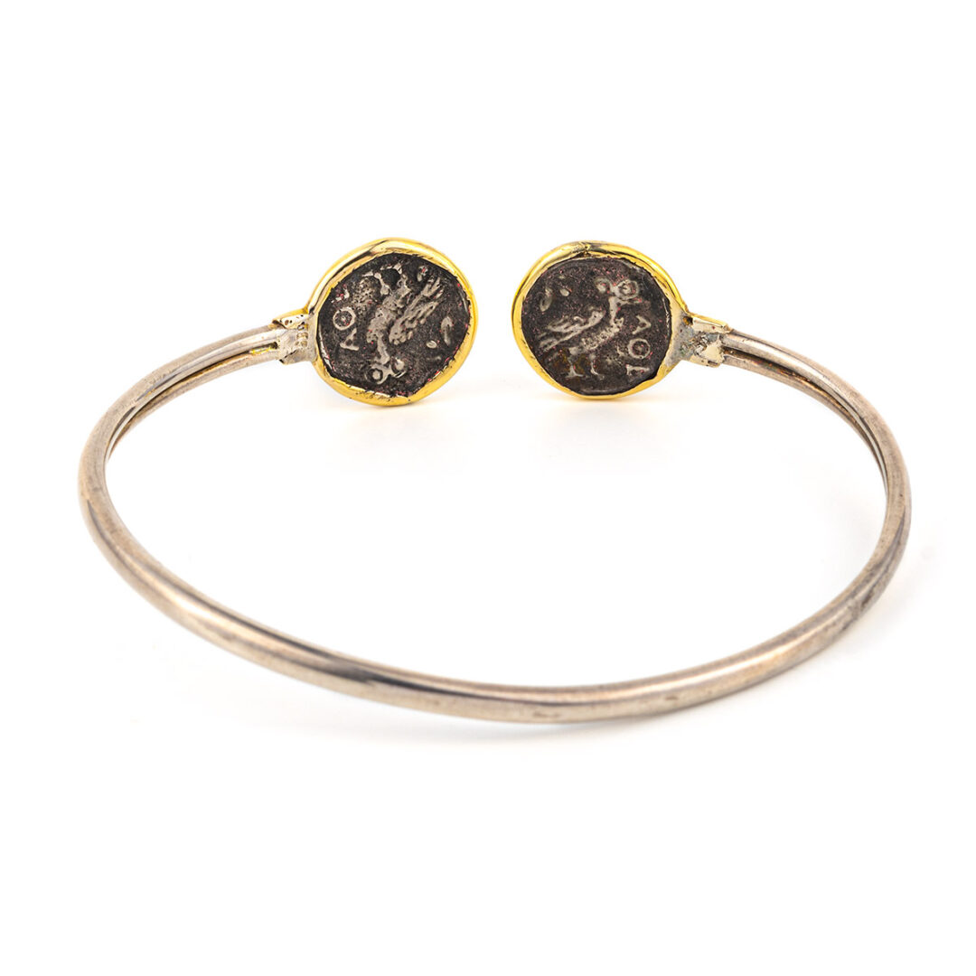Goddess Athena Coin Hinge Bracelet – 14K Gold and 925 Sterling Silver