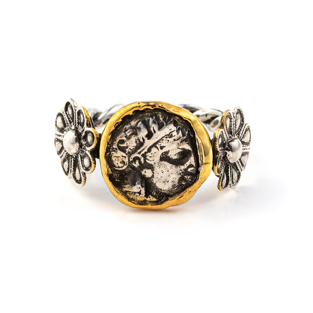 Δαχτυλίδι Θεά Αθηνά με Ροζέτες – 14Κ Χρυσό και Ασήμι 925