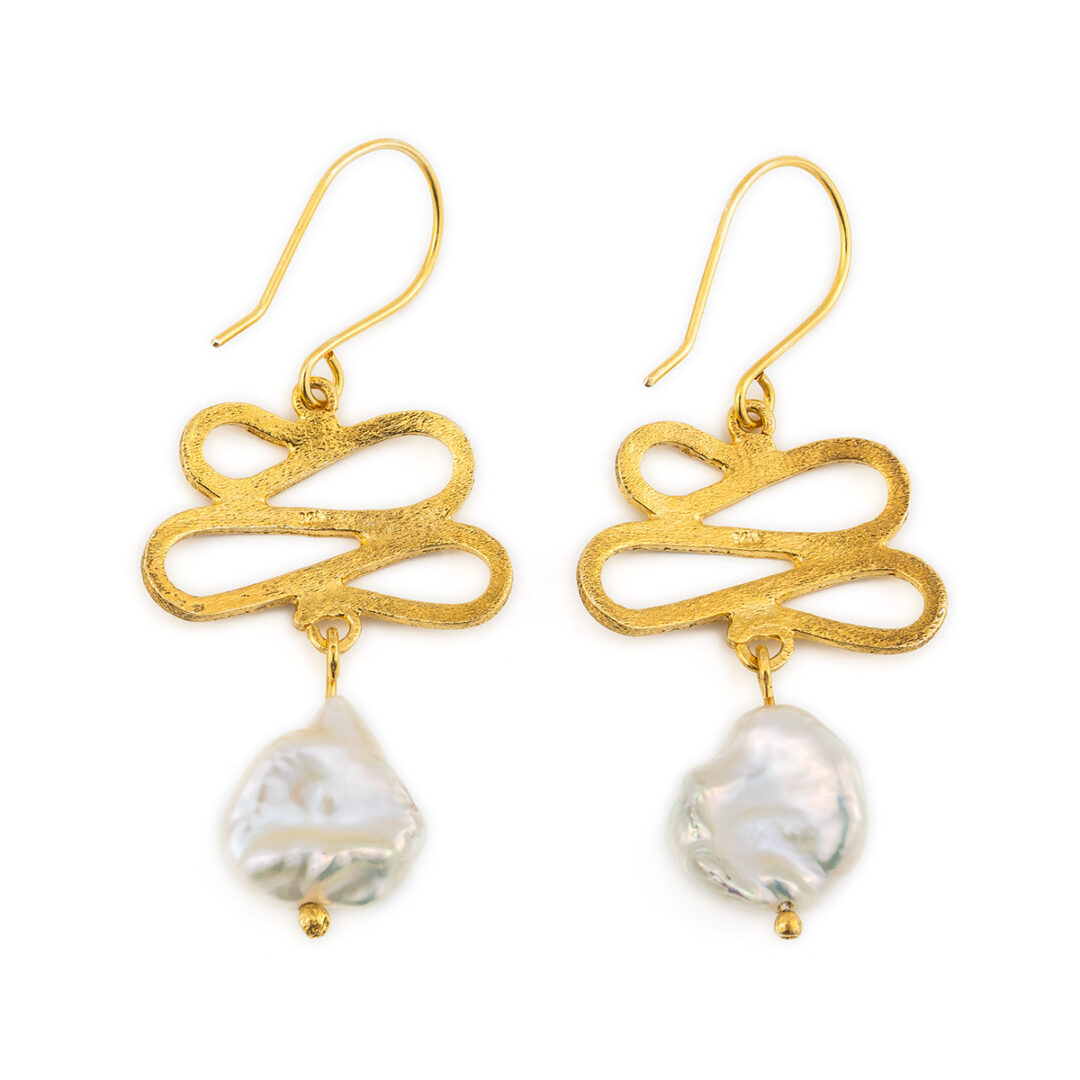 Σκουλαρίκια Κρεμαστά με Πέρλες – Ασήμι 925 και Επιχρυσωμένα