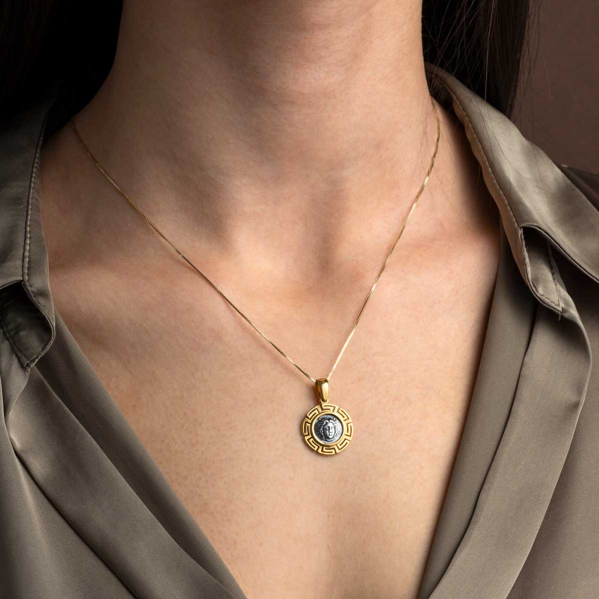 Handmade pendant, inspired by an ancient Greek tetradrachm coin of Rhodes.