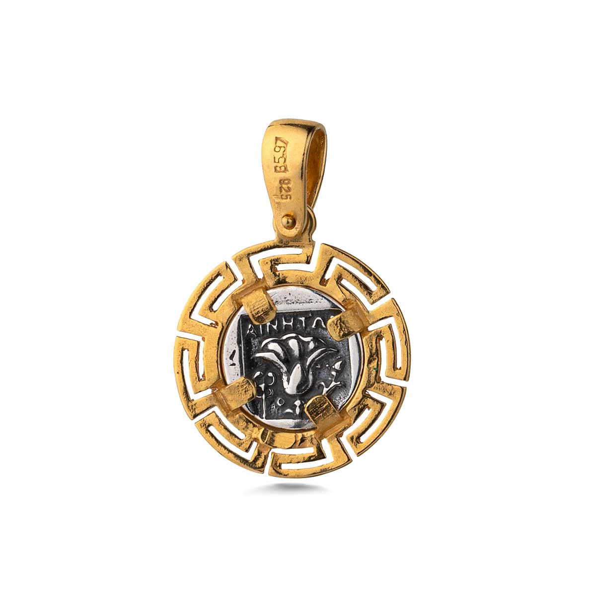 Vergina Sun Meander Pendant 925 Sterling Silver Gold Plated 52,00 46,80