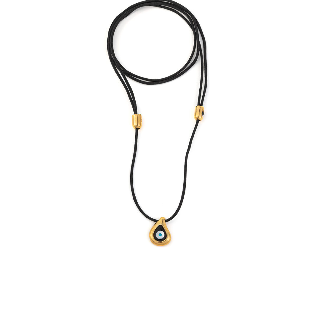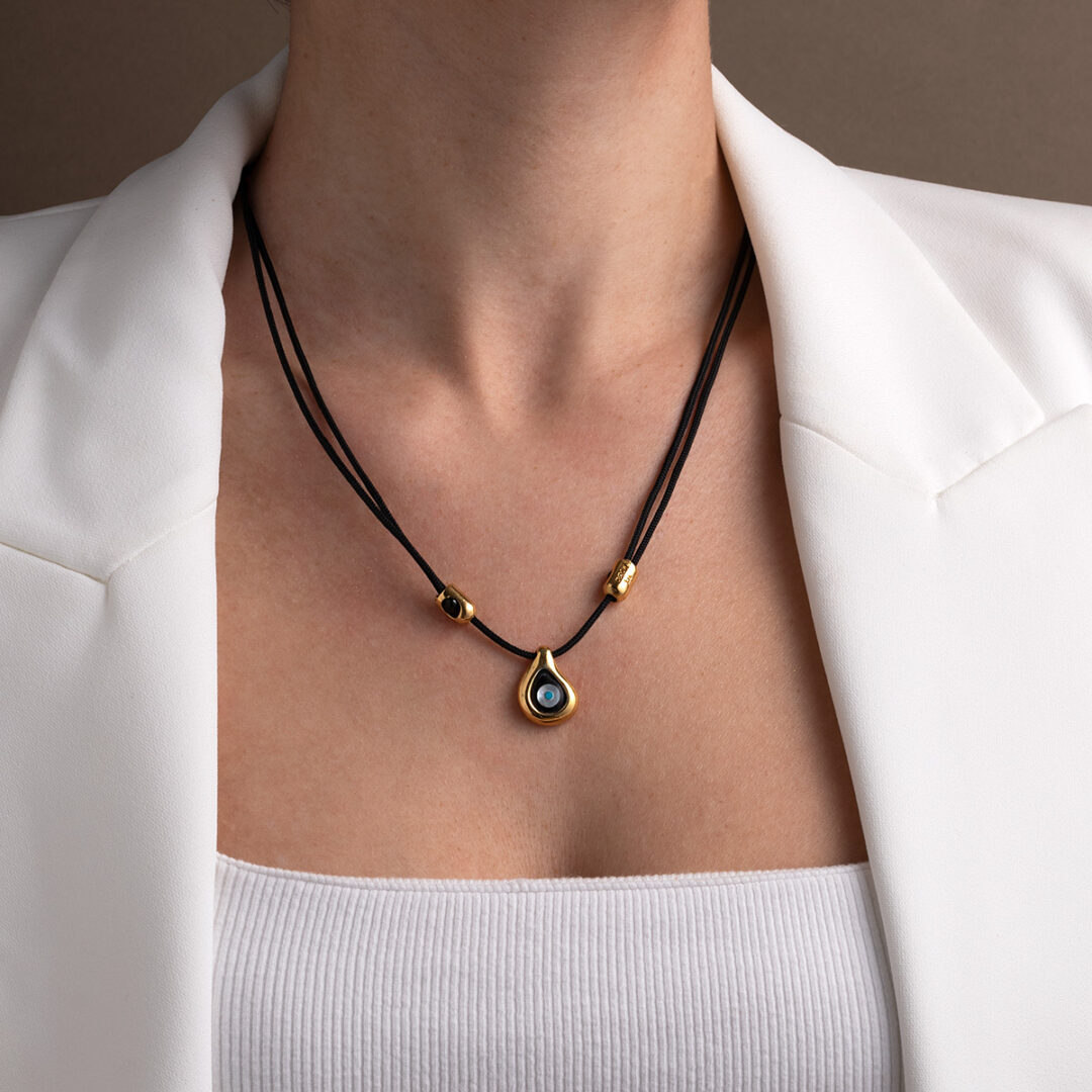 Κολιέ Μάτι με Μαύρο Κορδόνι – Ασήμι και Επίχρυσωμένο Ασήμι
