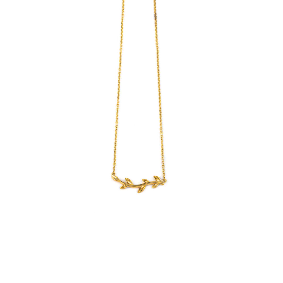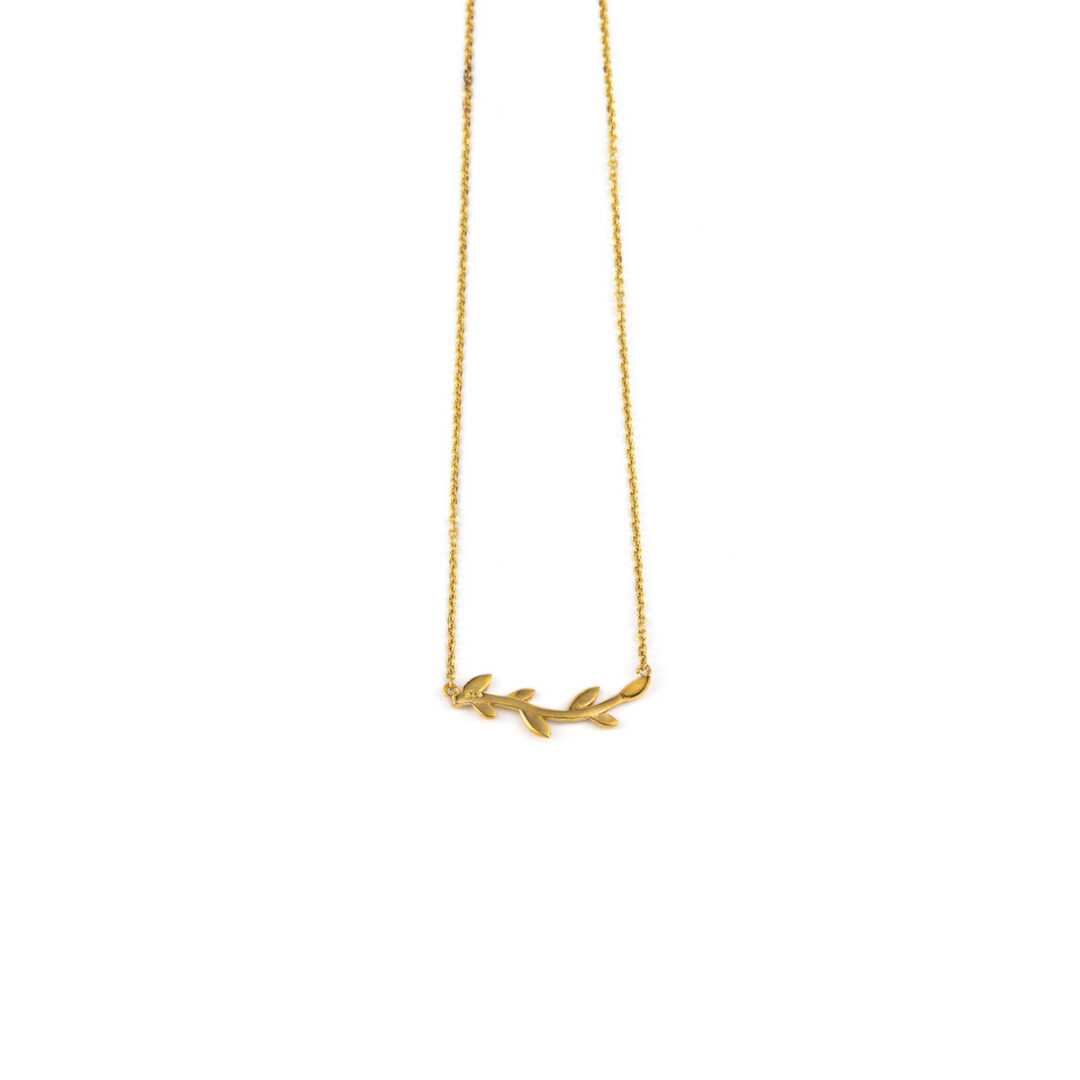 A necklace inspired from the olive branch, a symbol of peace, abundance and achievement.