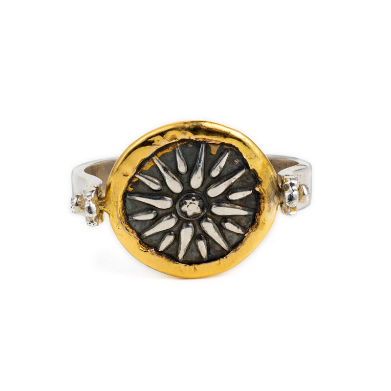 Ασημένιο Δαχτυλίδι Μάτι Επίχρυσο με Σμάλτο