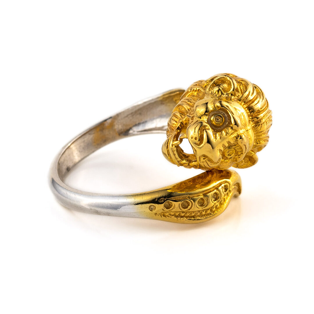 Ram’s Head Coin Ring in Sterling Silver and Gold Plated