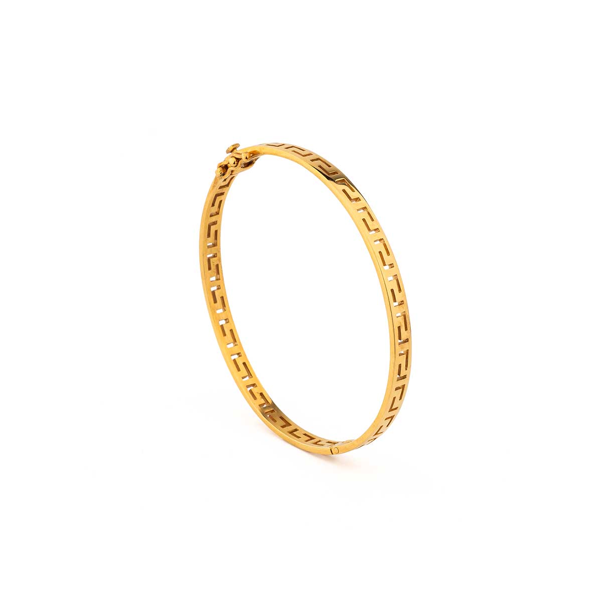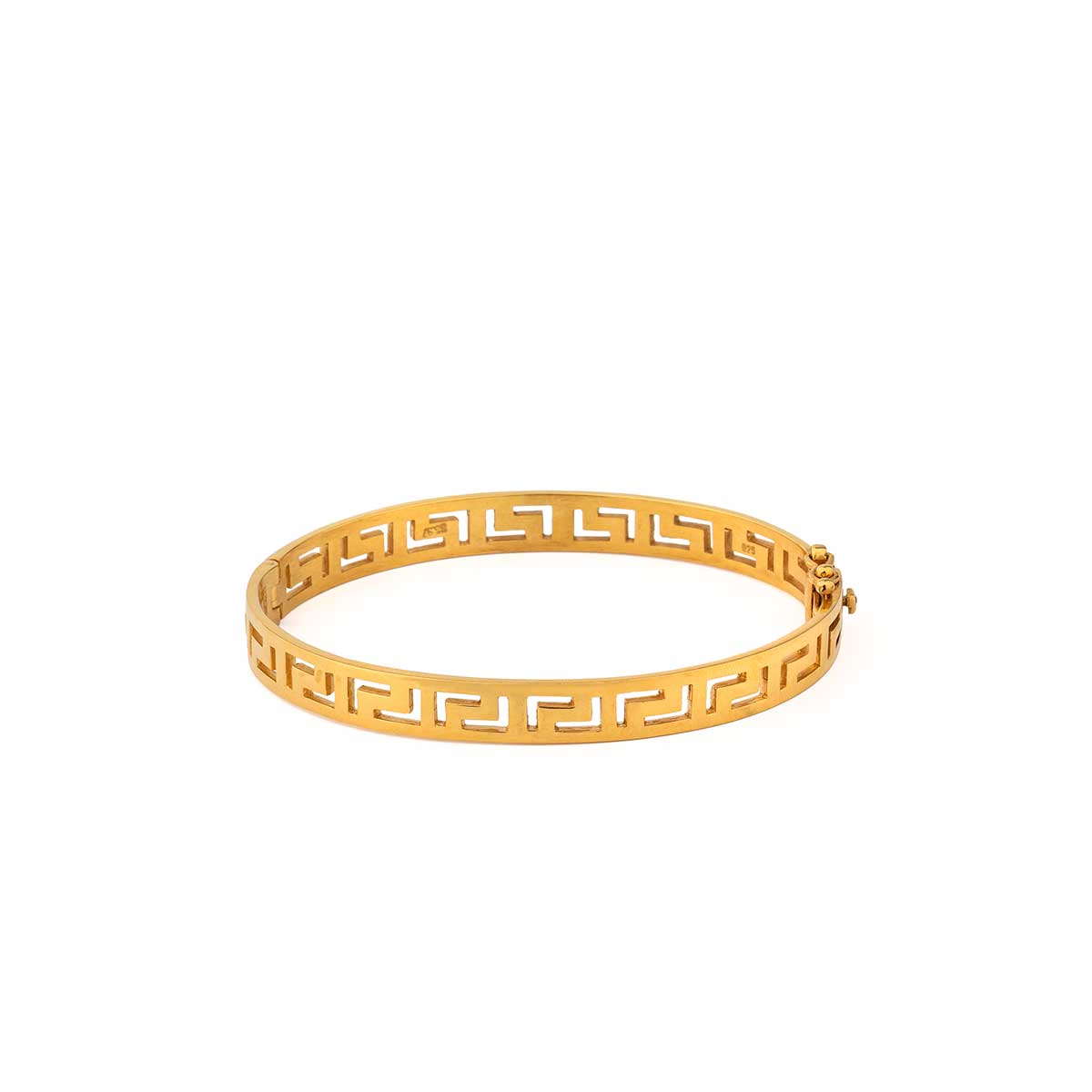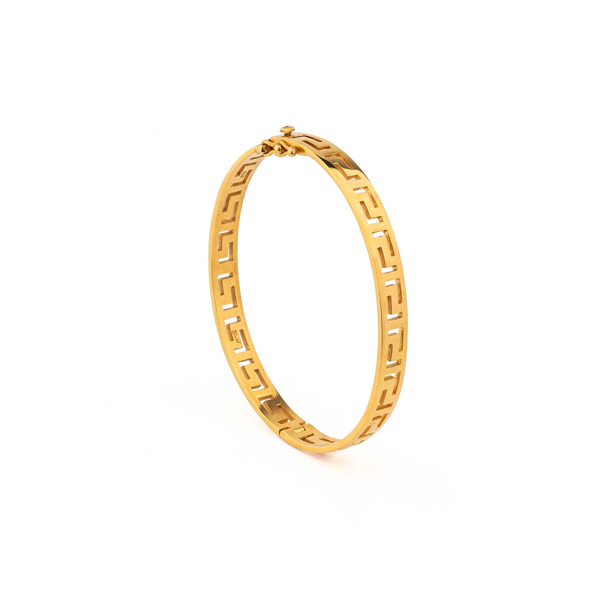 Beautiful and elegant bracelet inspired by the ancient greek meander (meandros) symbol. Meander design is a decorative border constructed from a continuous line, shaped into a repeated motif. Such a design is also called the Greek fret or Greek key design, although these are modern designations. One the one hand, the name “meander” recalls the twisting and turning path of the Meander River in Asia Minor, and on the other hand, as Karl Kerenyi pointed out, “the meander is the figure of a labyrinth in linear form” the meaning is that these is no beginning and to end end in some cases so it become the symbol of long life and eternity.