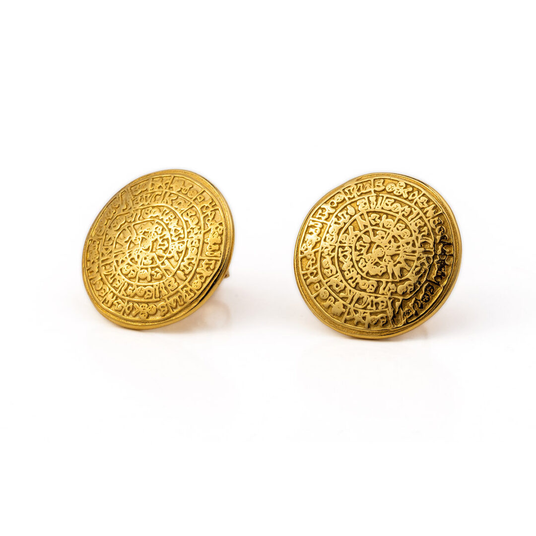 Minoan Phaistos Disk Earrings – Sterling Silver and Gold Plated