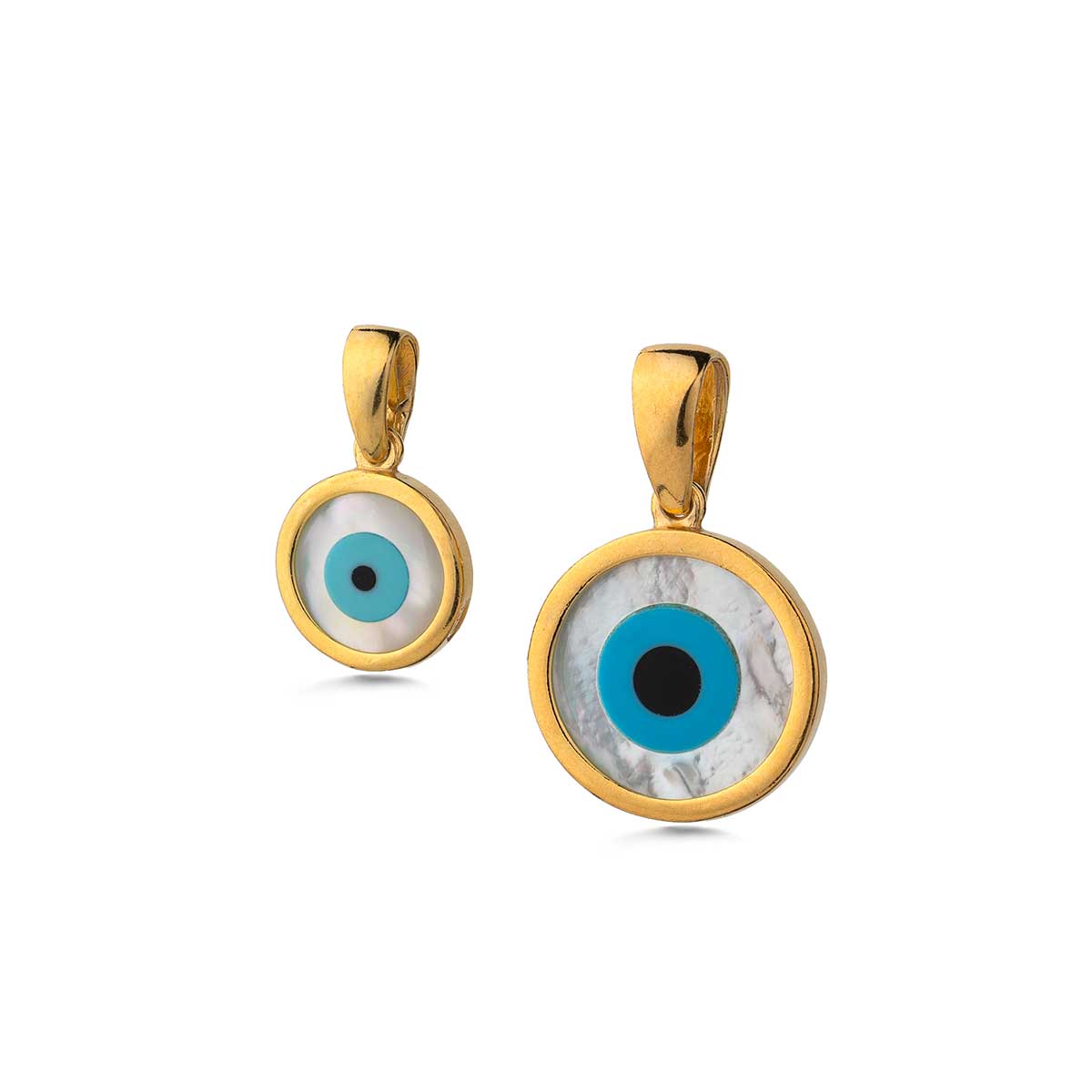 Mother of Pearl Round Evil Eye Pendant Gold Plated Charm