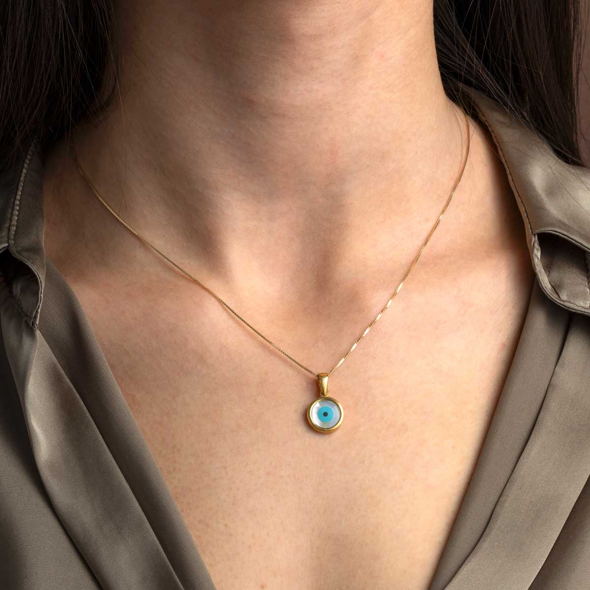 A pendant representing the evil eye protective symbol.