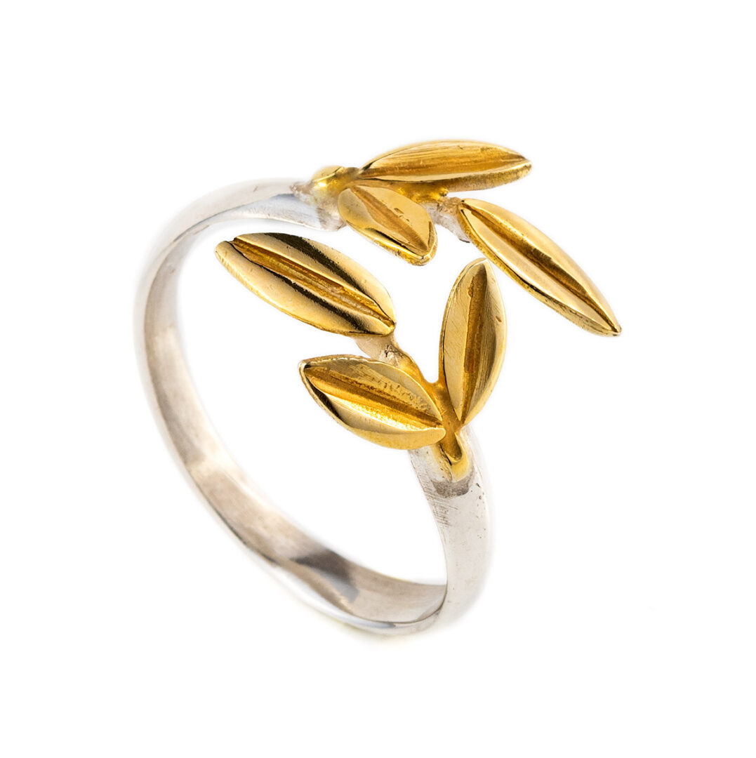 Δίχρωμο Δαχτυλίδι Ελιά – Επιχρυσωμένο Ασήμι 925