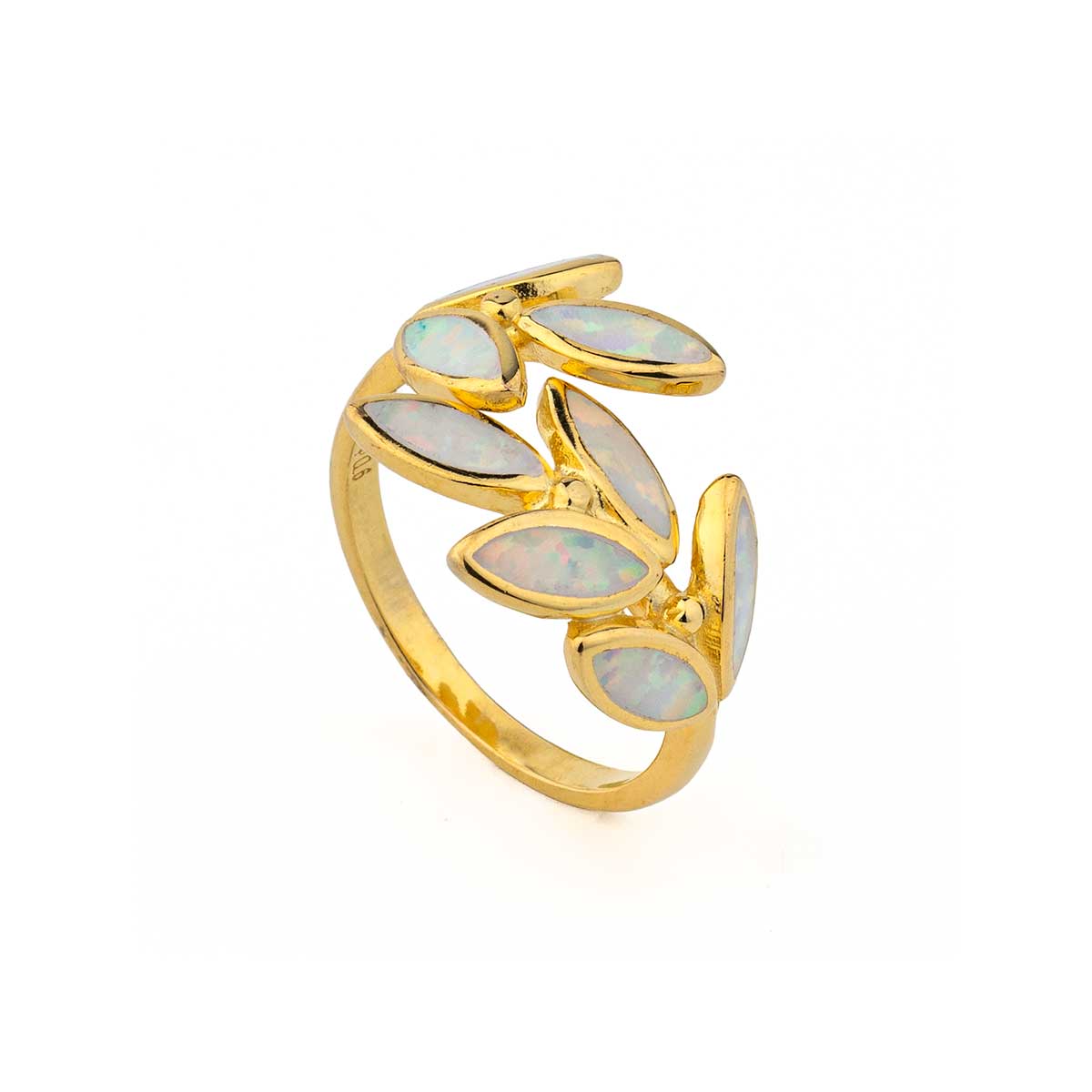 Olive Ring in 925 Sterling Silver with White Opal