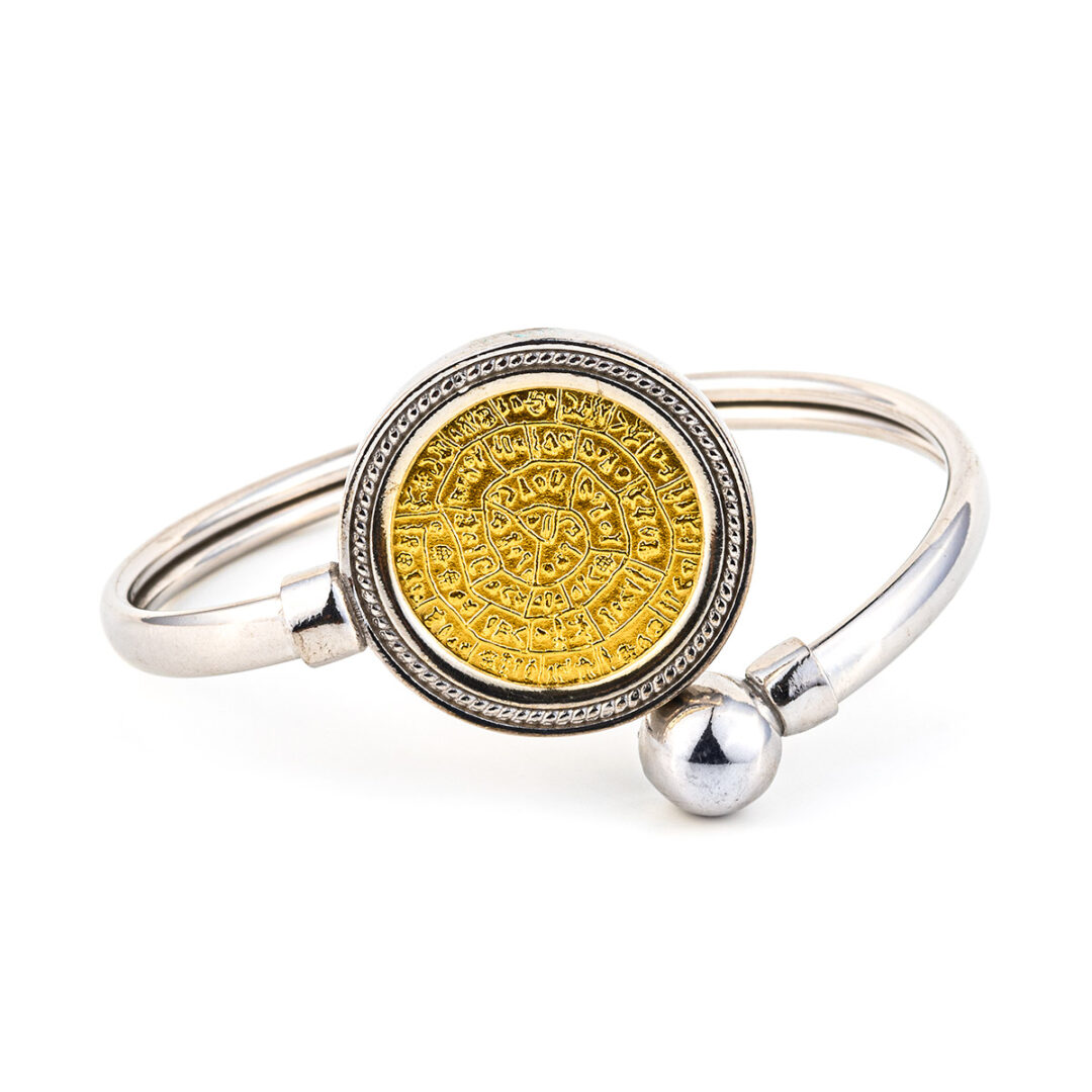 Βραχιόλι Χειροπέδα με Δίσκο της Φαιστού – Επιχρυσωμένο Ασήμι 925