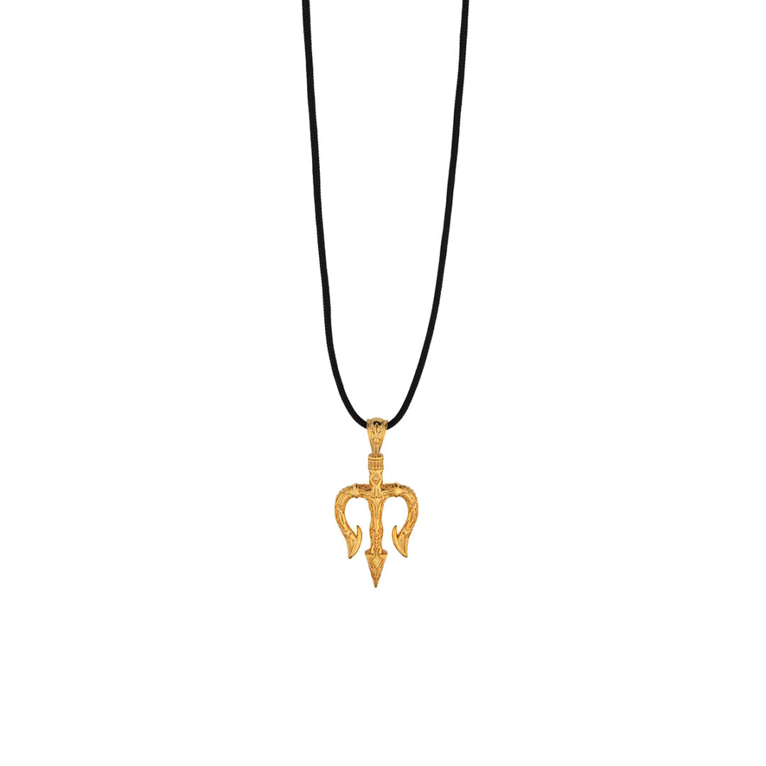 Poseidon’s Trident Cord Necklace in 925 Sterling Silver