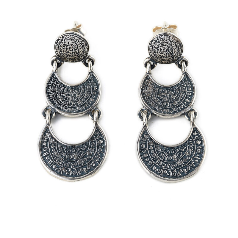 Phaistos Disk Silver Dangle Earrings
