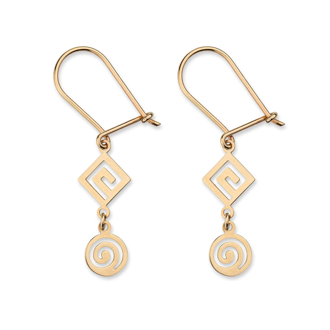 Spiral και Μαίανδρος Χρυσά Σκουλαρίκια Κρεμαστά 14Κ