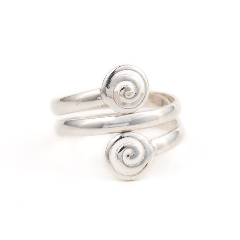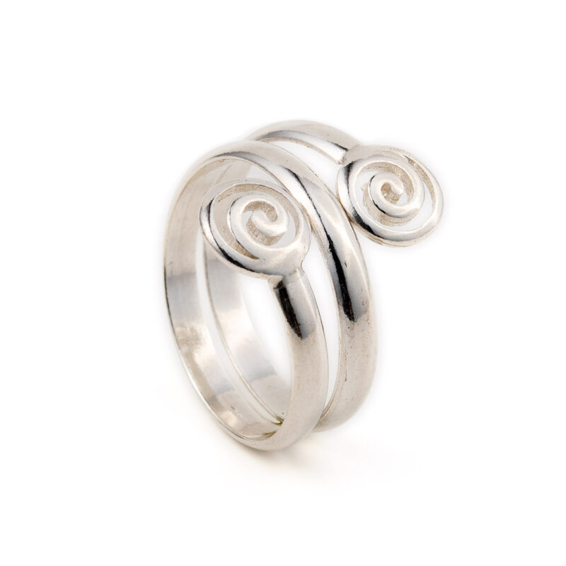 Ένα όμορφο ασημένιο δαχτυλίδι εμπνευσμένο από το σύμβολο της σπείρας. Η σπείρα είναι ένα από τα παλαιότερα σύμβολα της ανθρώπινης πνευματικότητας, σκαλισμένο ή ζωγραφισμένο σε βράχους χιλιάδες χρόνια πριν. Σύμβολο της κίνησης και της προοδευτικής ανάπτυξης, της ανάπτυξης, της επέκτασης, της κοσμικής ενέργειας, σύμβολο του ήλιου.. Σπείρες έχουν βρεθεί σε χώρους ταφής, σε αγγεία, σε κοσμήματα, ρούχα, όπλα… Μπορούν να παρατηρηθούν σε κάθε πτυχή της φύσης, όπως οι παλίρροιες στους ωκεανούς, οι άνεμοι, τα φυτά, τα κοχύλια. Το φαινόμενο της σπείρας έχει εξηγηθεί με τη σκέψη των μαθηματικών από την εποχή του Αρχιμήδη, του μεγάλου Έλληνα μαθηματικού.