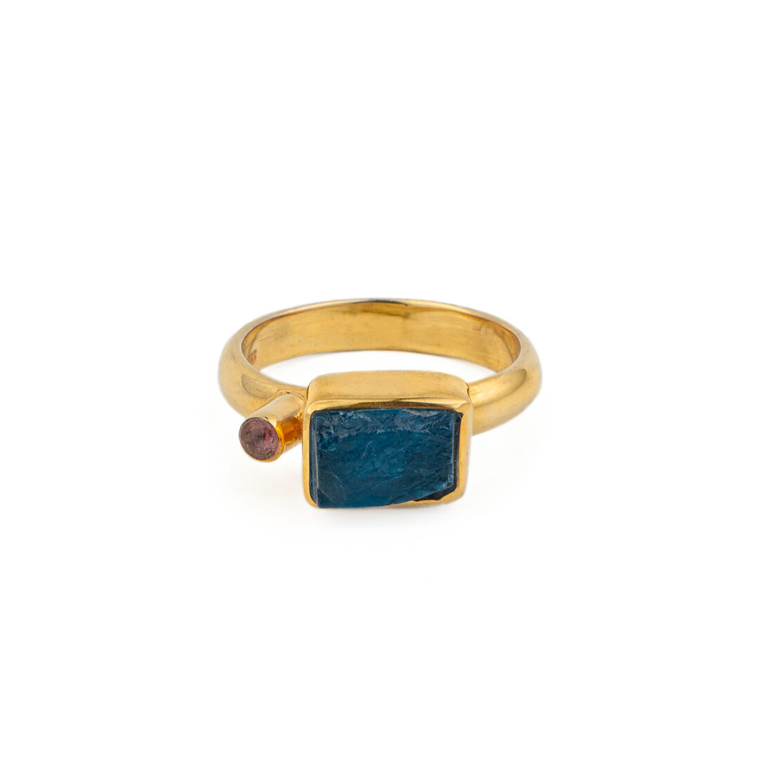 Τετράγωνο Δαχτυλίδι με Απατίτη – Επιχρυσωμένο Ασήμι 925