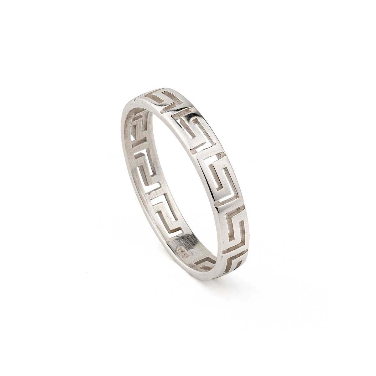 Thin Greek Key Ring in 925 Sterling Silver