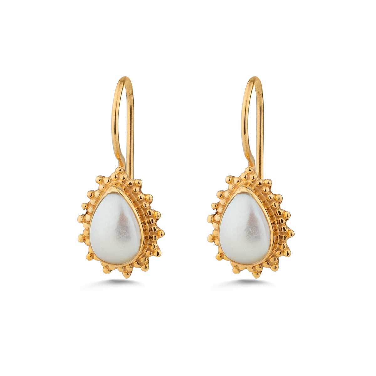 Turquoise & Pearl Teardrop Earrings in 925 Sterling Silver & Gold Plating