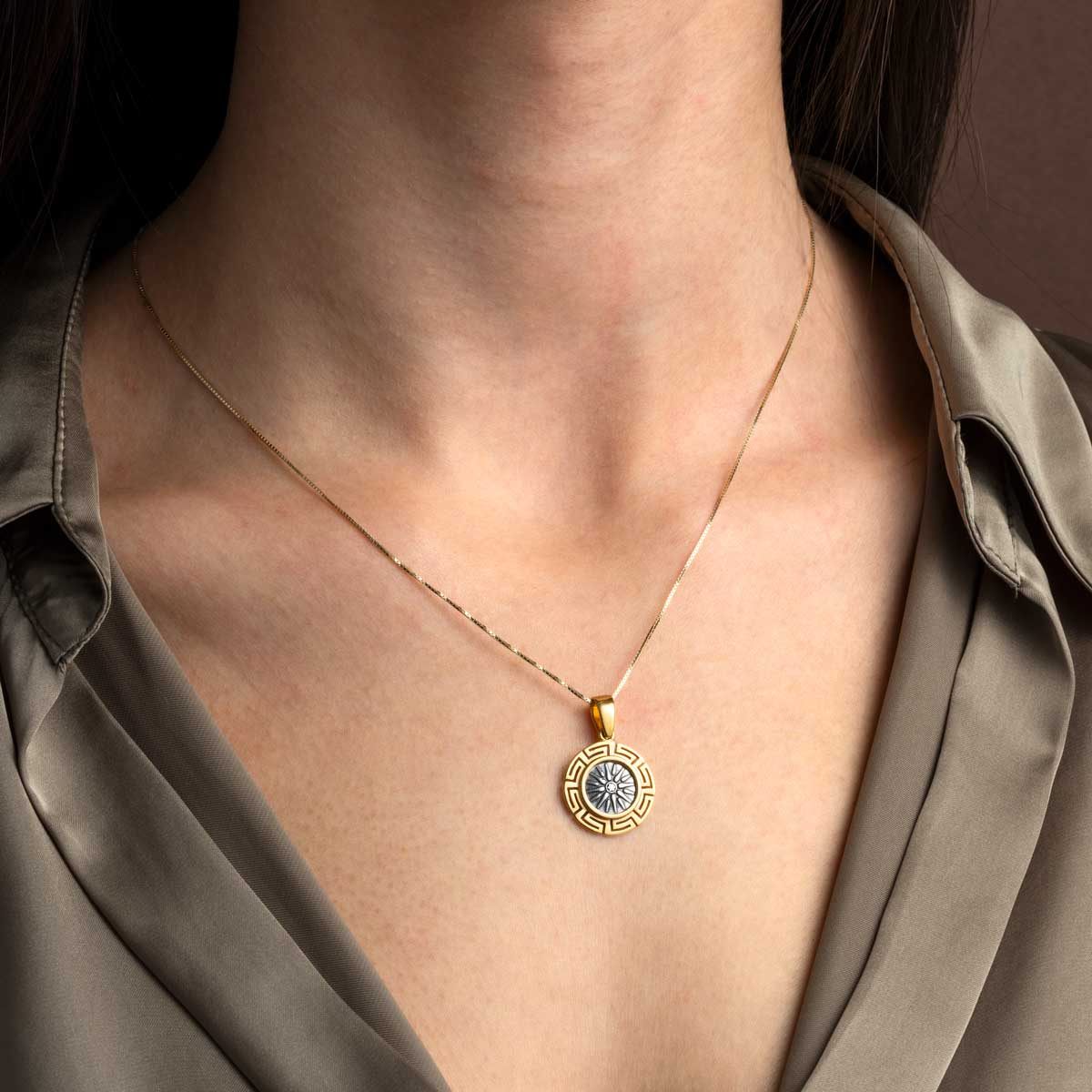 Vergina Sun Meander Pendant 925 Sterling Silver Gold Plated