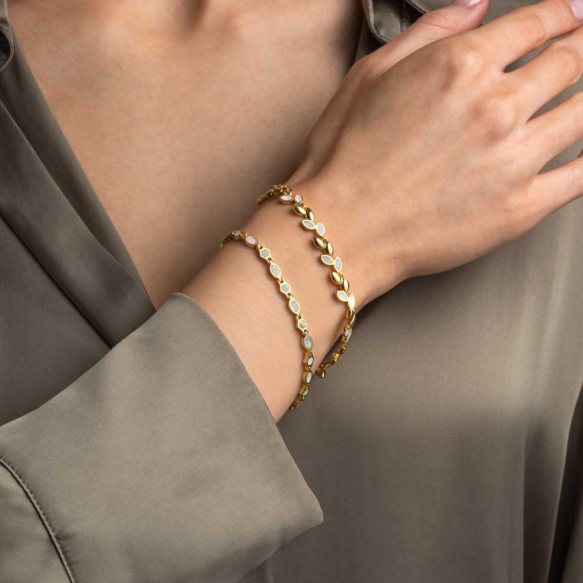 White Opal Bracelet in 925 Sterling Silver Gold Plated
