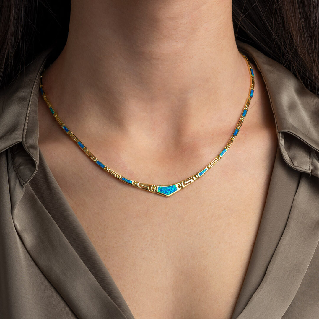 Κολιέ Μαίανδρος με Όπαλ – Ασήμι 925 και Επιχρυσωμένο